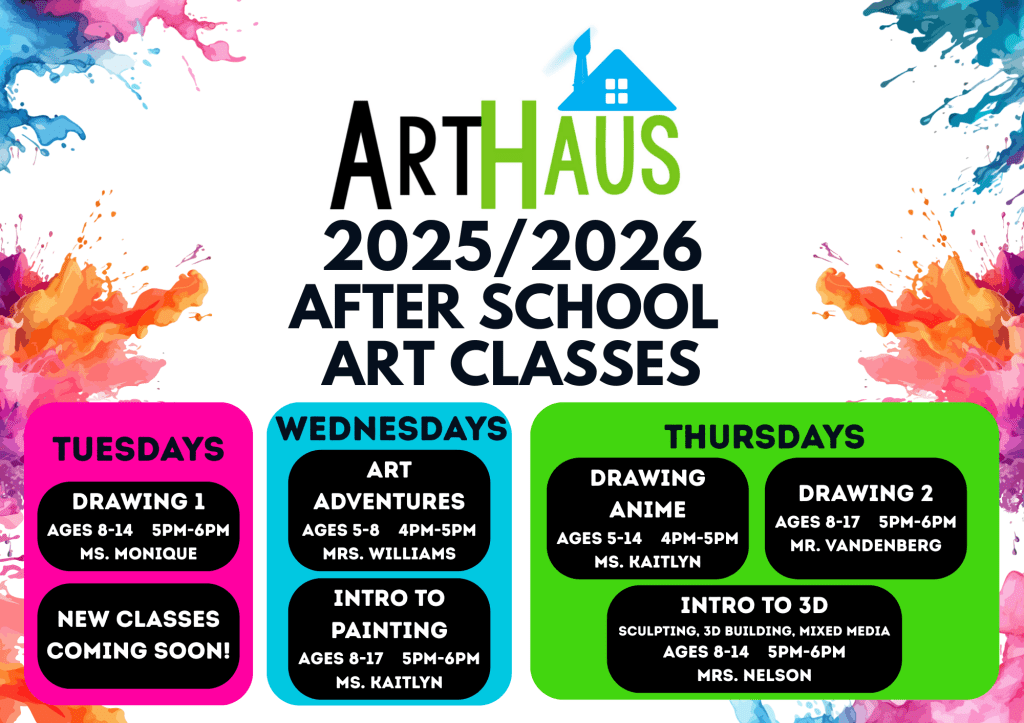 Take a look at our 2025/2026 After School Art Class lineup! Classes start September 2!